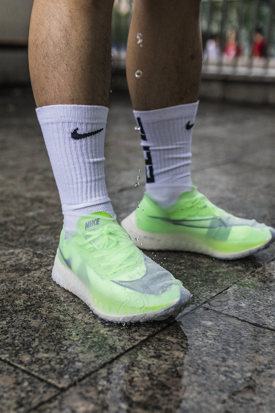 但需要注意的是,高帮球鞋不能被鞋套完全包裹,被水浸没还是会进水,所以踩水坑还是要小心。