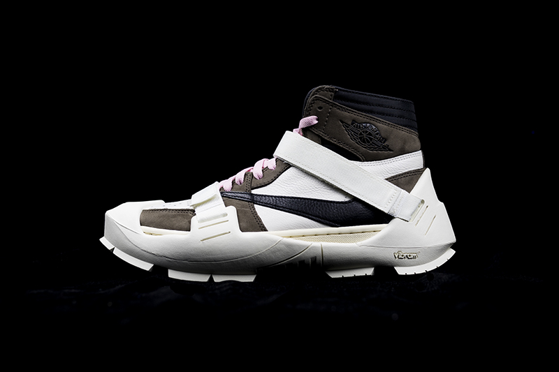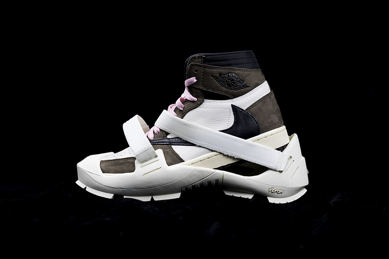 然后将反勾 Air Jordan 1 放入,对于 Air Jordan 1 这类较瘦的鞋型,选择相同尺码的 MMW 鞋底即可。