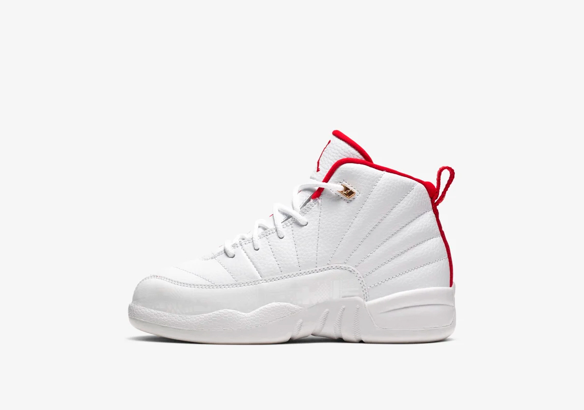 白、红双色装扮的鞋身,细节处还辅以金扣点缀,延续中国主题 Air Jordan 12 的一贯设计,又彰显着浓郁的复古 OG 气息。