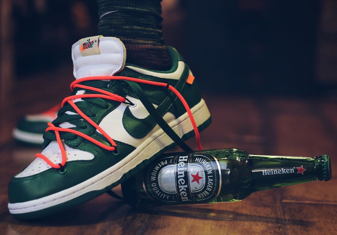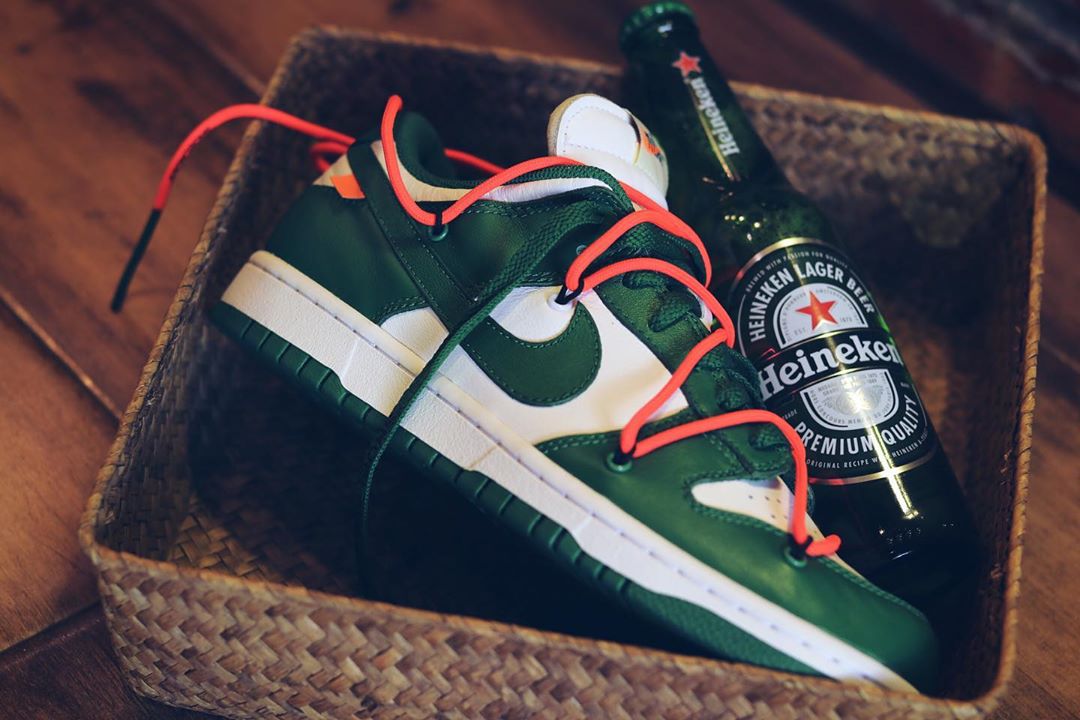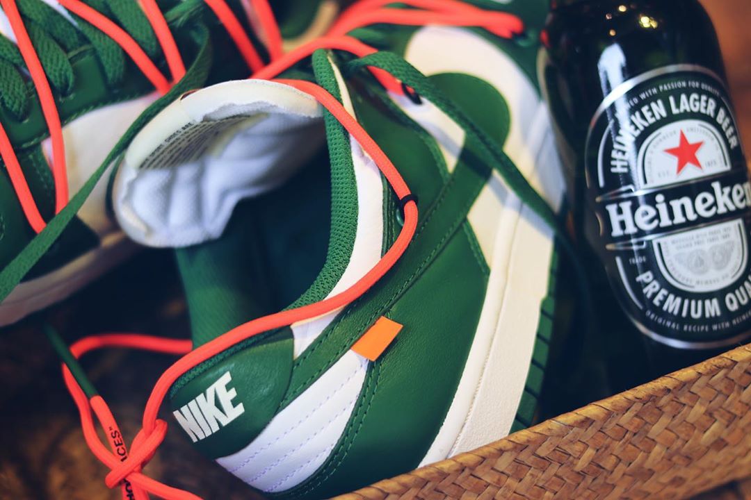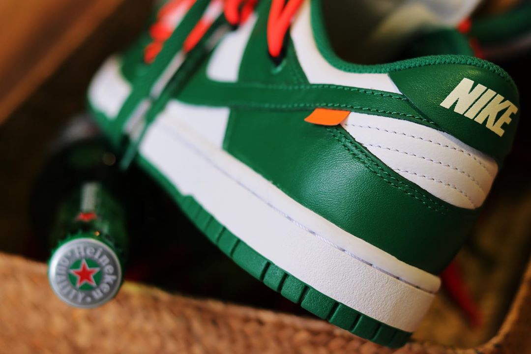 同样的白绿主题,与经典的「喜力」有几分相似之处,保持 Dunk SB Low 经典风格的同时,强烈的解构属性让这双鞋多了几分机能与时尚。