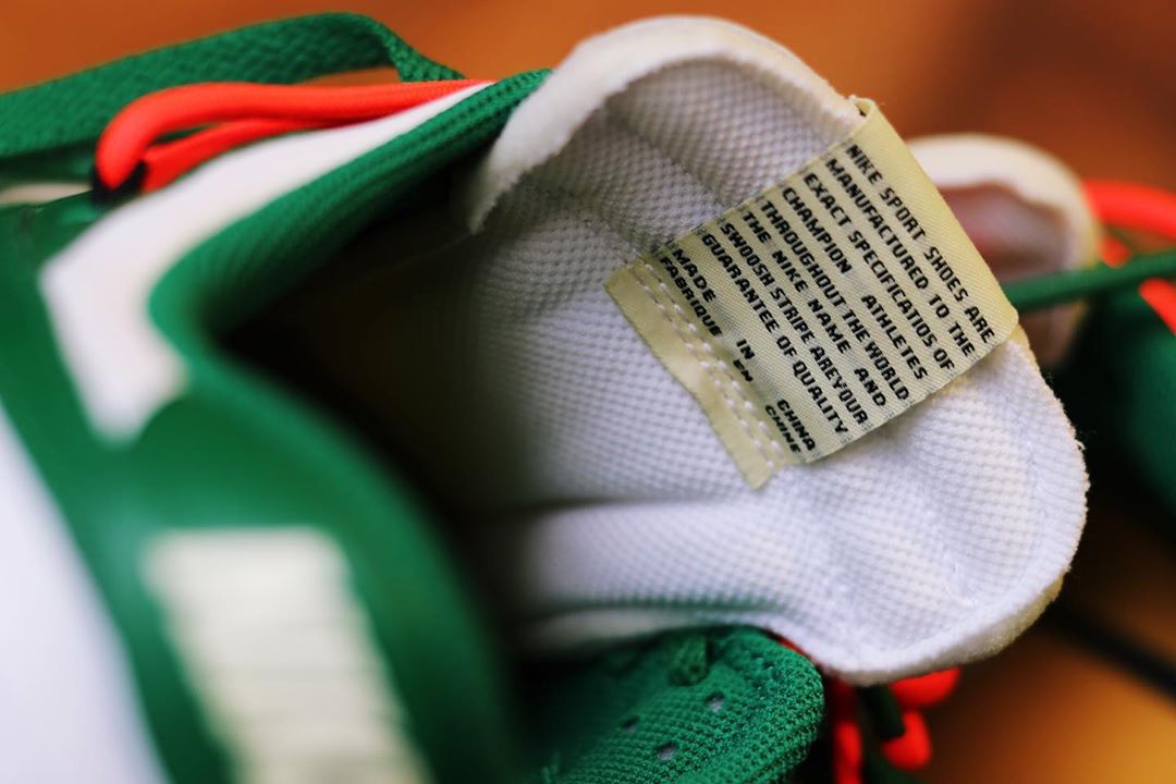 从这张模糊的实物图中可以看出,白红配色与白绿在设计上完全相同,但白红主题在球鞋圈向来人气极高,喜欢这双鞋的人应该会更多。