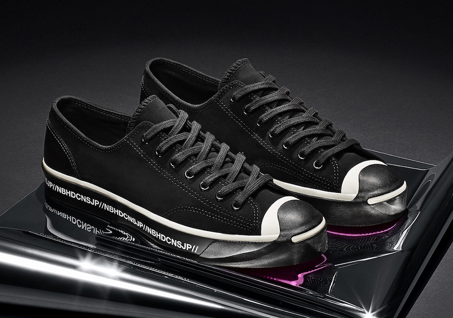 此次以 Chuck 70 和 Jack Purcell 为设计蓝本,两双鞋均以黑色为主色调,辅以白色细节修饰。