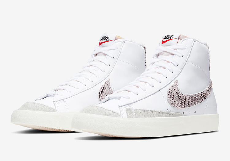 最大亮点在于侧身 Swoosh 标志采用蛇纹装饰,后跟同样搭配蛇纹覆盖,与白色底色形成强烈对比,尽显奢华时尚气质。