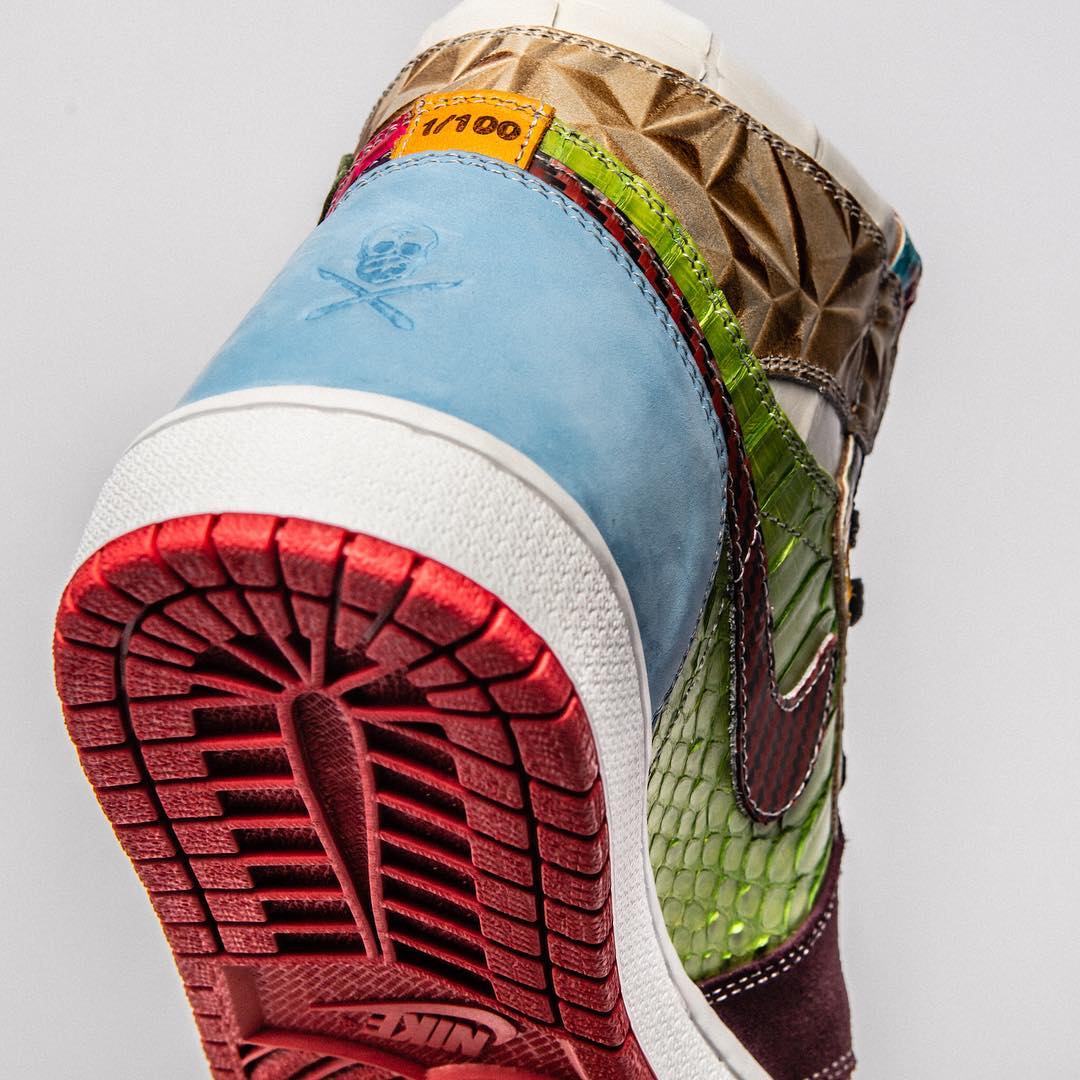 鞋舌及后跟部位点缀 The Shoe Surgeon 品牌 Logo,同时后跟处的 “1/100” 似乎表明了这双鞋只会打造 100 双并带有独立编号,呈现出独一无二的 “What the Scrap” 风格。