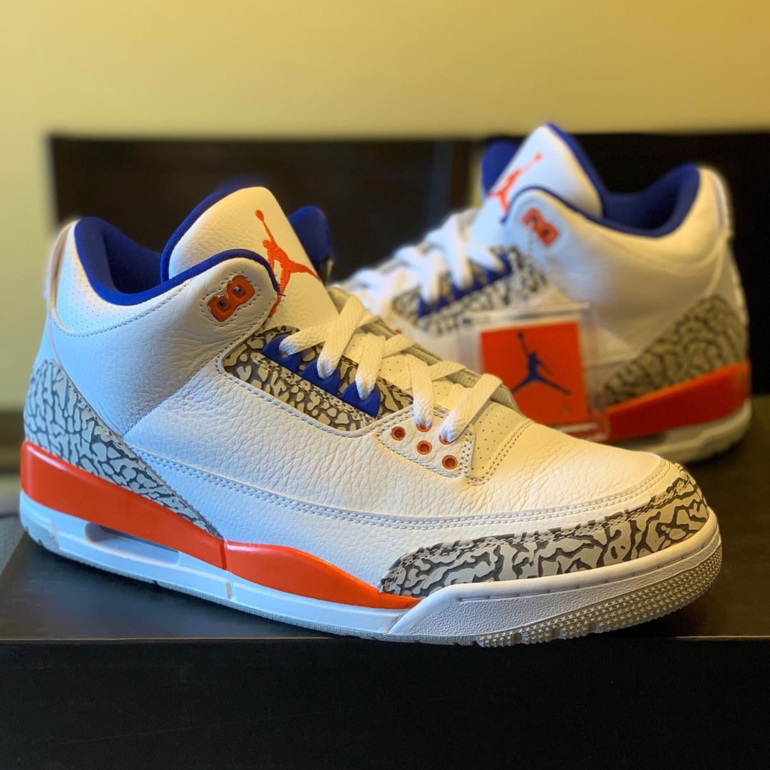 近日一双尼克斯配色的 Air Jordan 3 “Knicks” 首次曝出实物图。