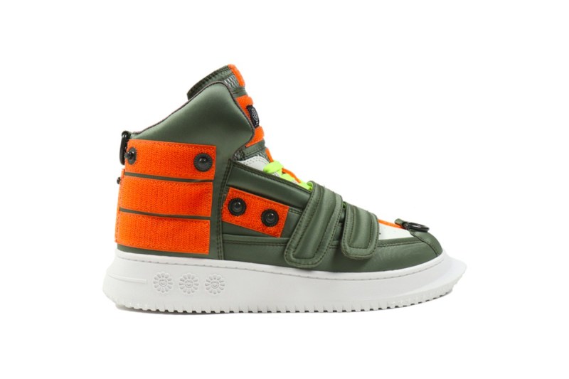 鞋身采用 PORTER TANKER 系列标志性的军绿与橙色调,并且加以军事感十足的口袋设计。