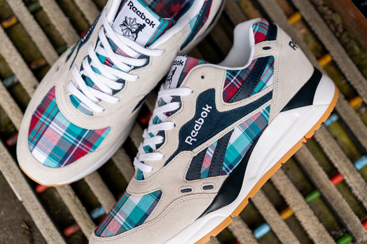 以经典的 Reebok Bolton 鞋型为蓝本,灰色麂皮覆盖鞋身,最大亮点在于鞋面搭配蓝、白、红三色格子布装饰,灵感源于上世纪 90 年代英国流行的夏季格子衬衫。