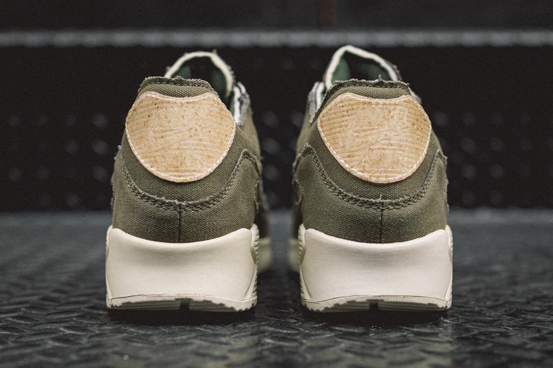 这双鞋采用棉麻材质打造鞋面,Swoosh Logo 等鞋身装饰均以带有木纹的材质打造。