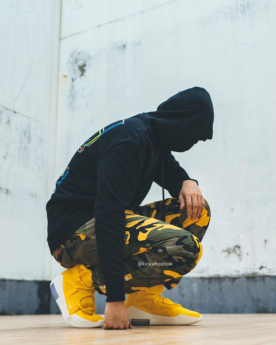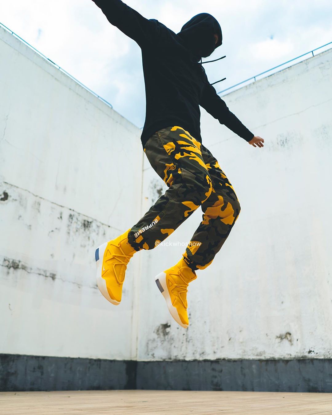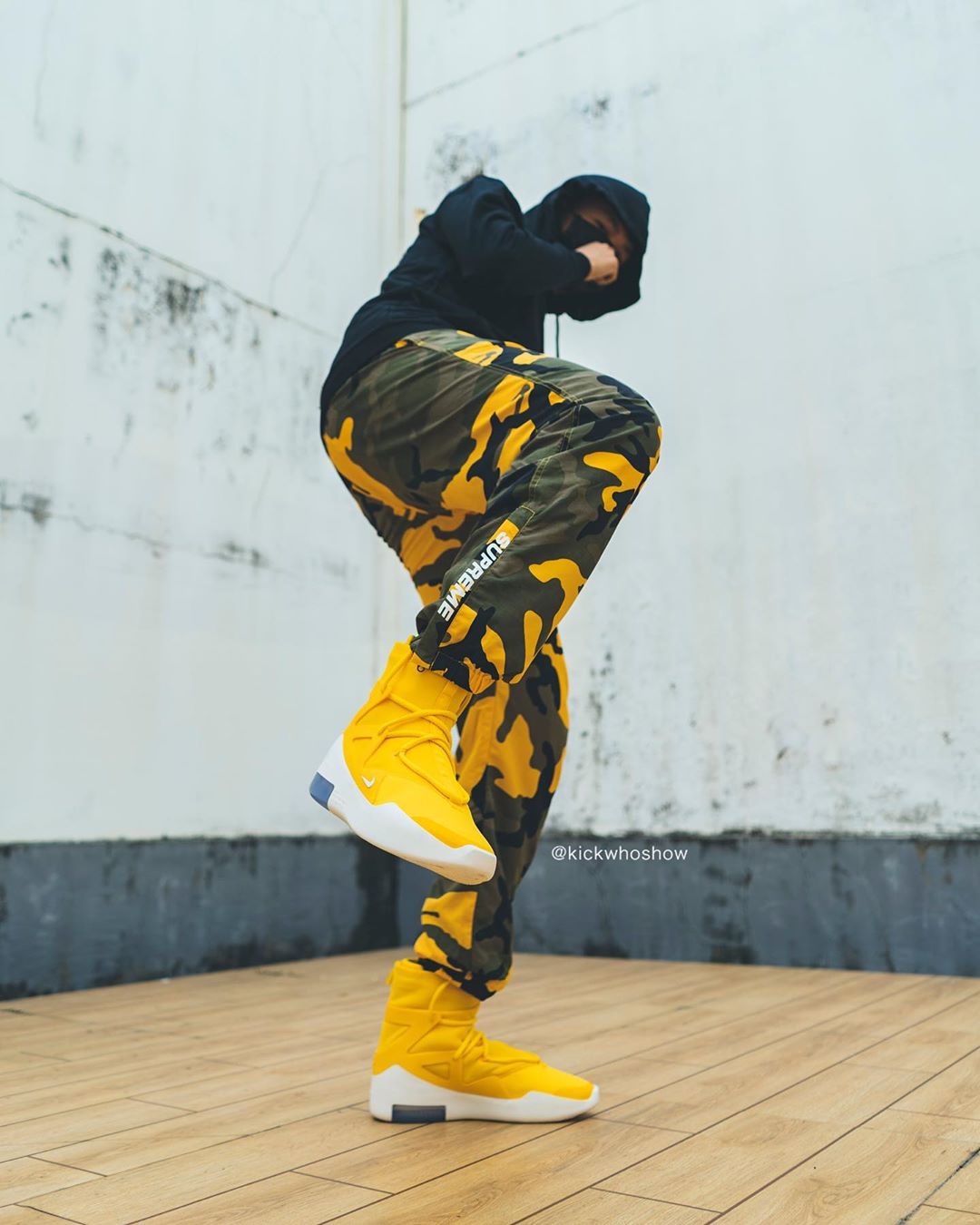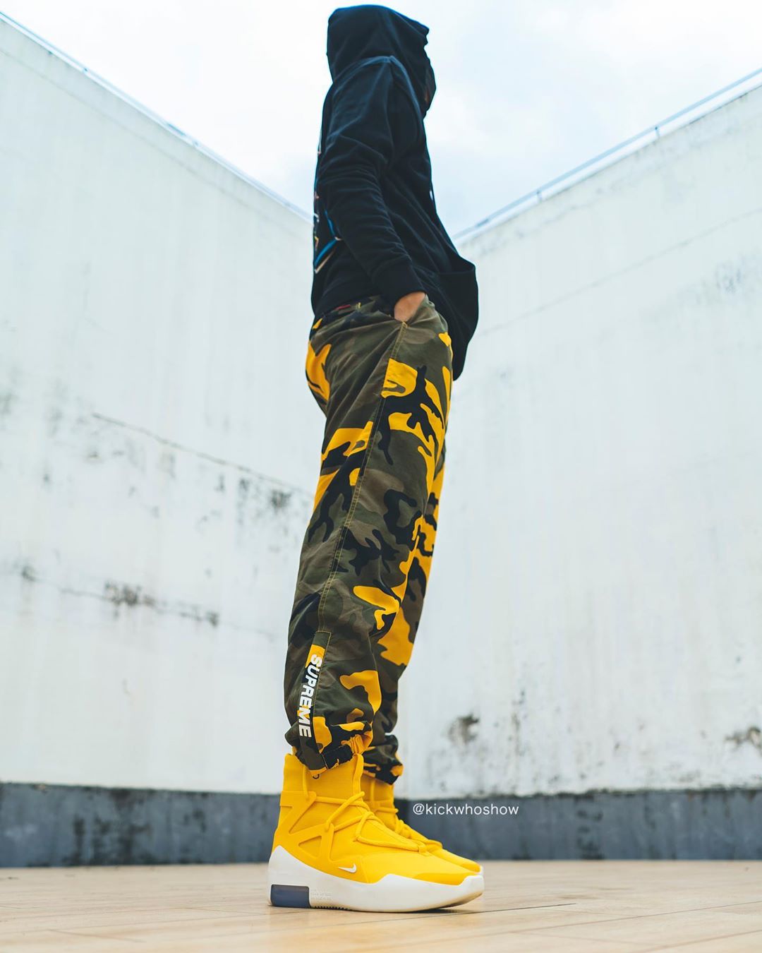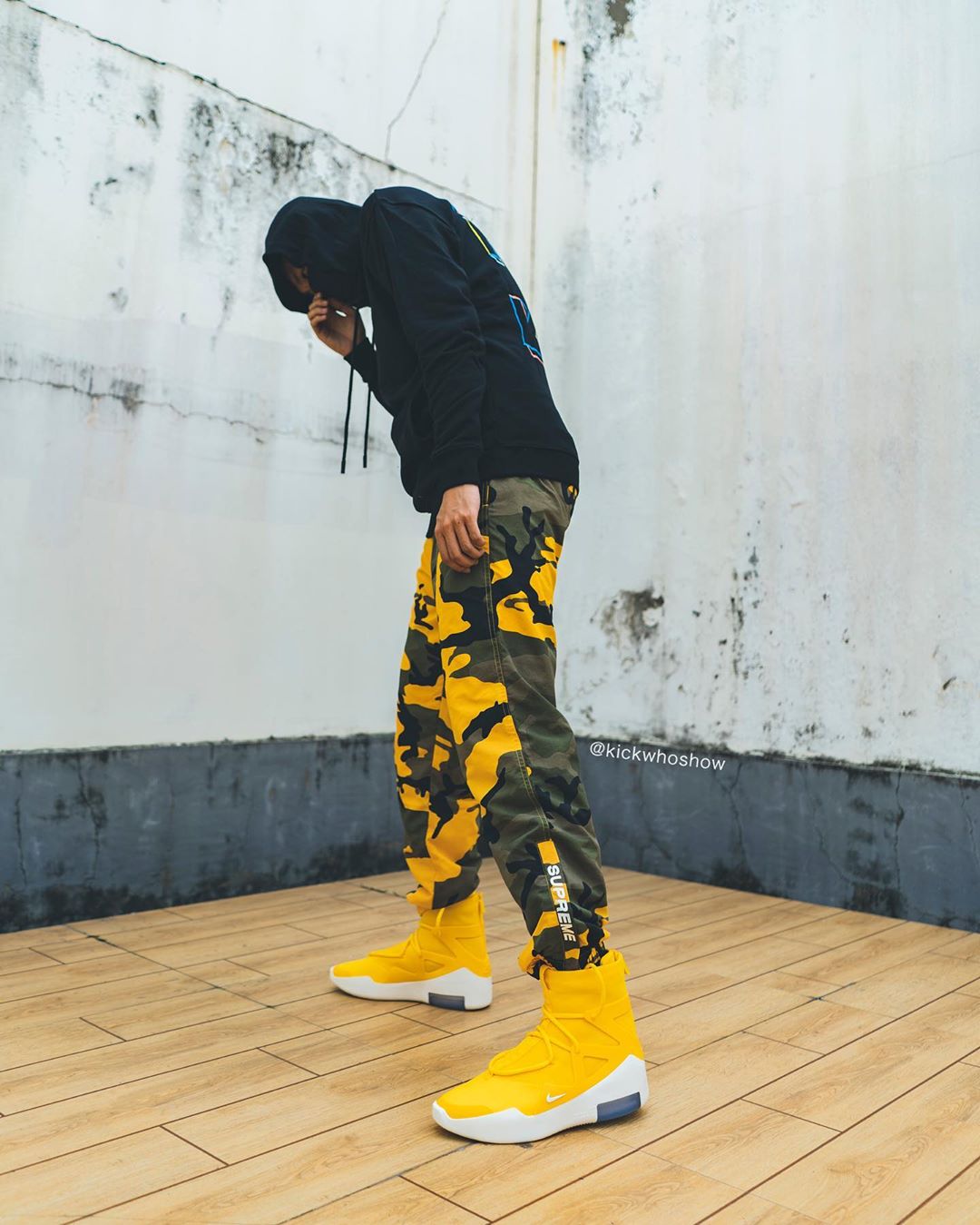 近日 Instagram 球鞋账号 @kickwhoshow 率先带来黄色 Air Fear of God 1 “Amarillo” 的上脚照。
