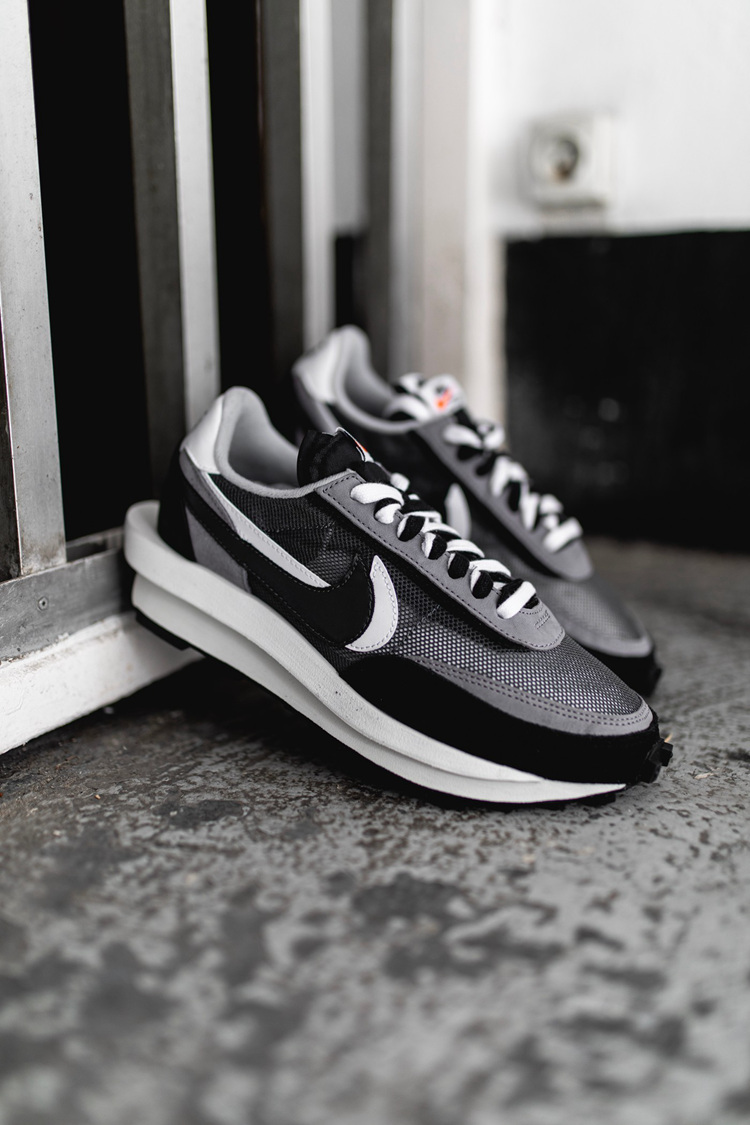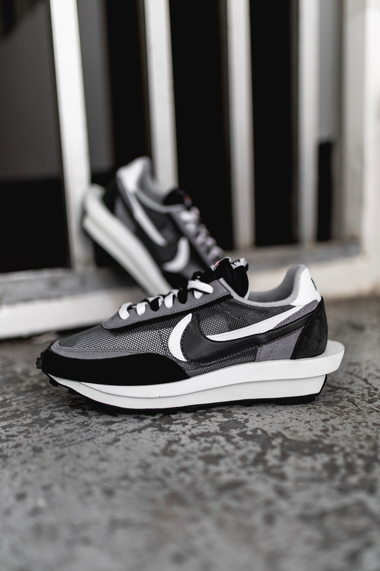 Sacai 对解构的独特见解,将经典鞋款 Waffle Daybreak 与 LDV 巧妙融合,把鞋舌、Swoosh Logo 及中底等部位,以叠加的方式重新演绎。