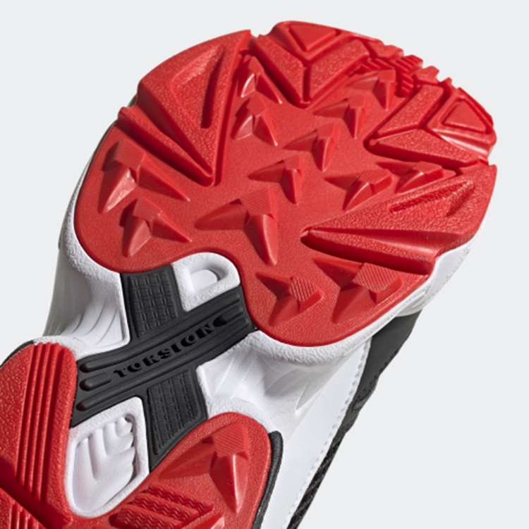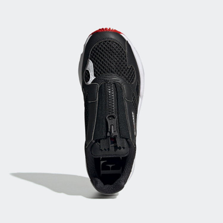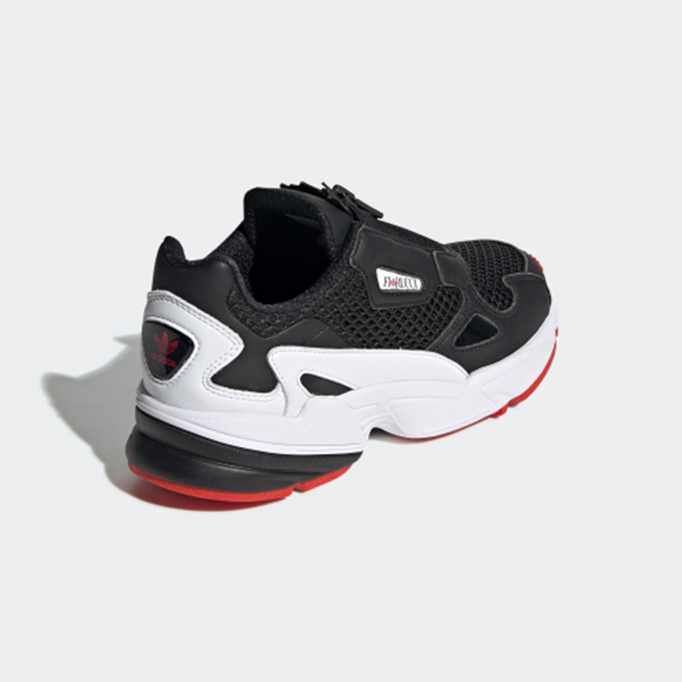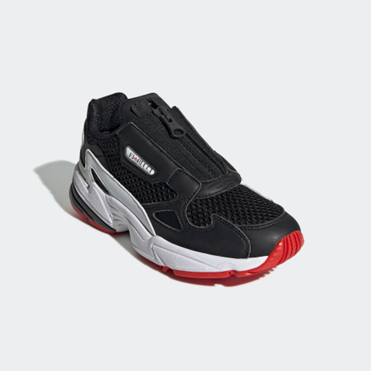 以经典 Falcon 鞋型为设计蓝本,鞋面由细腻皮革材质与网眼材质拼接构成,经典黑白配色搭配亮眼红色外底,呈现出独特的复古气质。