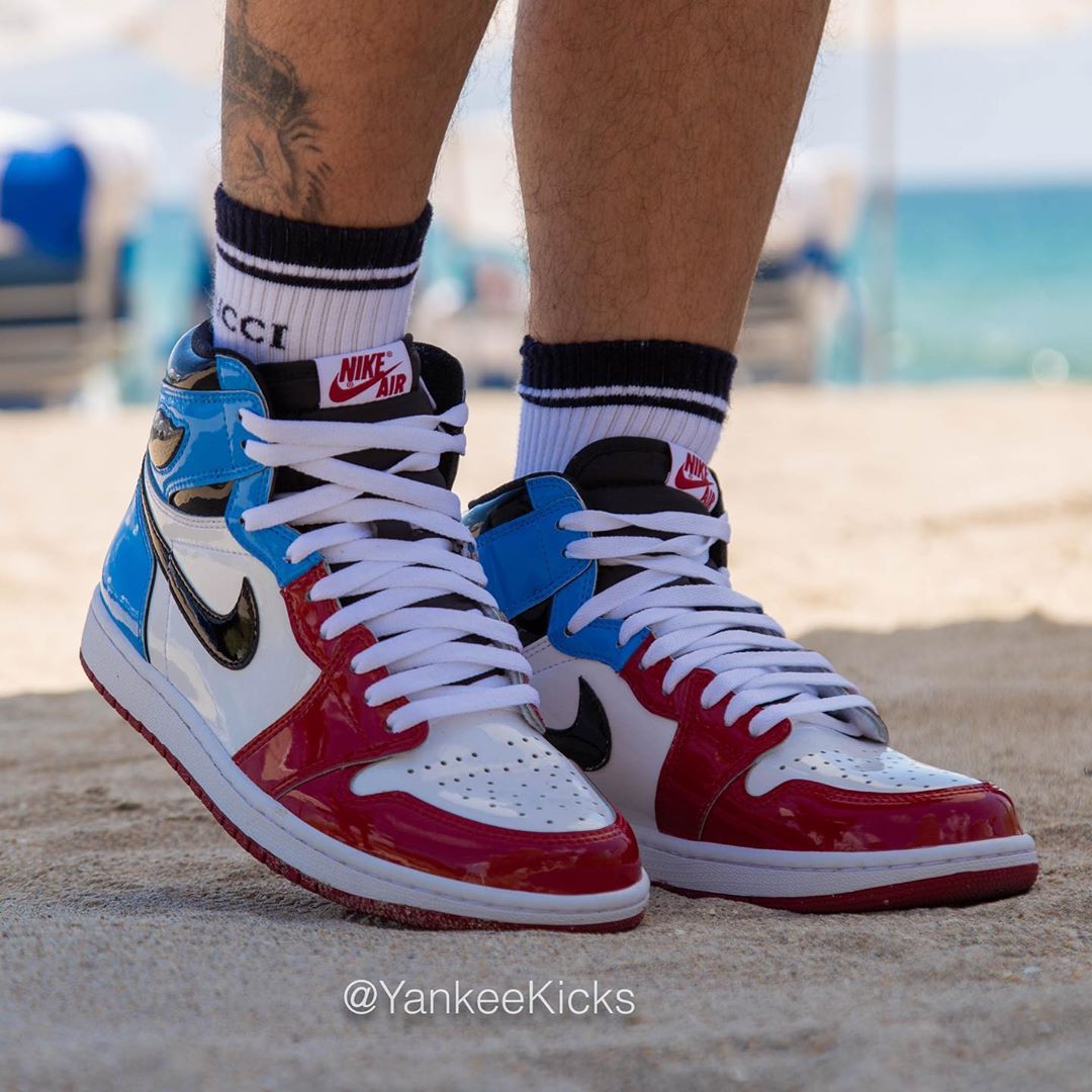 这款球鞋不仅将两大人气配色合二为一,更是加以漆皮材质打造,光泽质感更显高级。