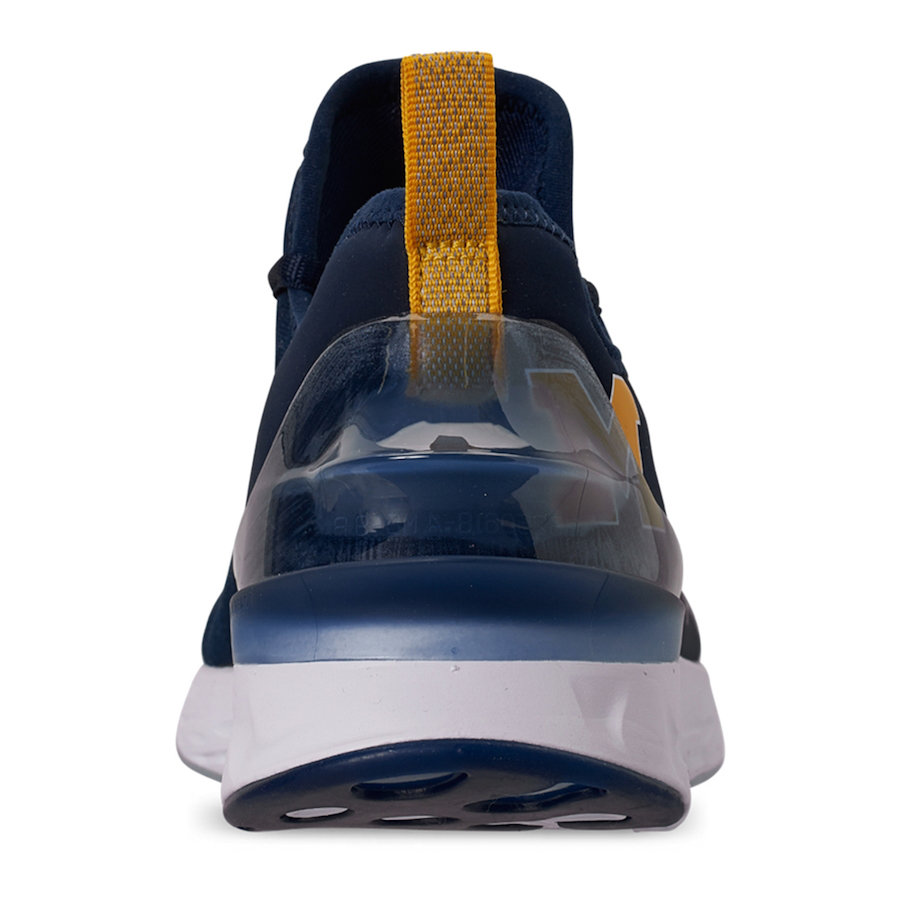 鞋面选用较为低调的海军蓝,密歇根大学标志性的 M 字样则采用了黄色设计,在深色的鞋面上格外显眼。