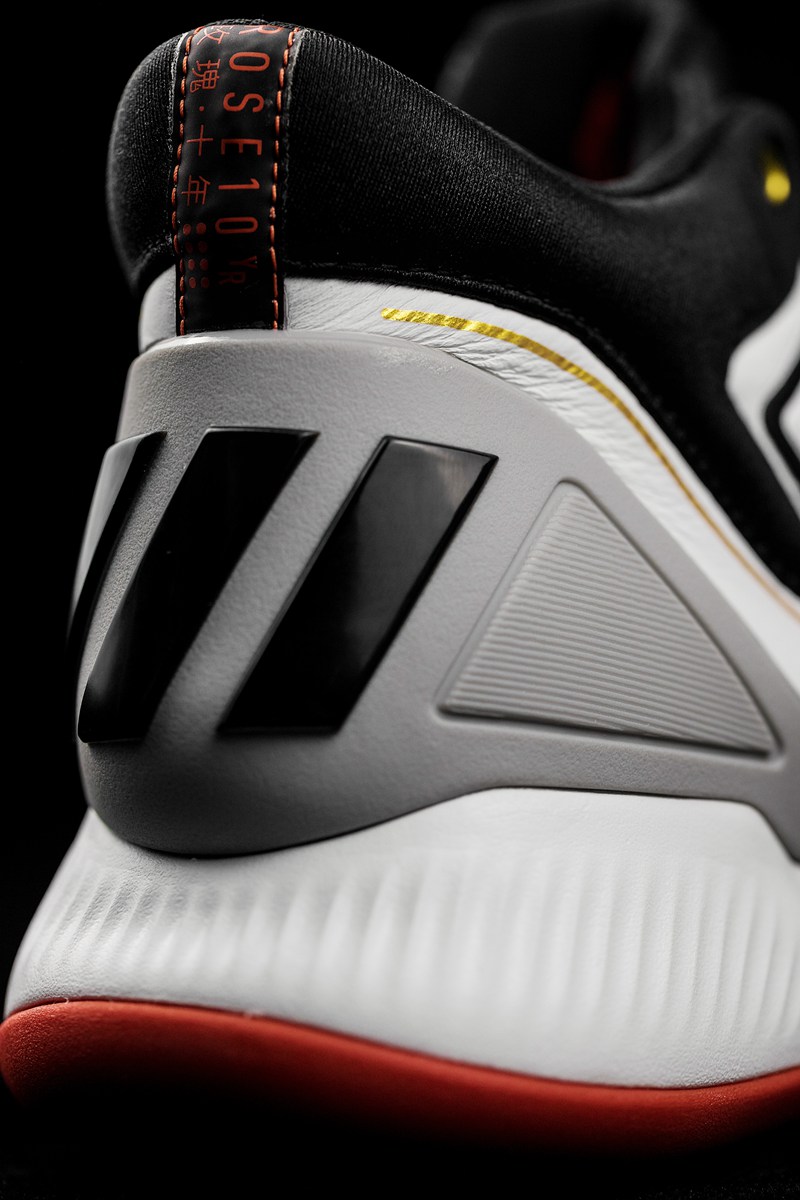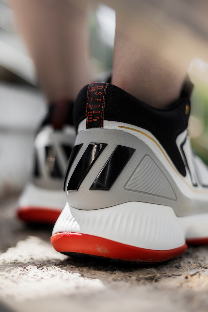 细看足弓部位同样有 ROSE 10 YR 字样,不仅昭示是这款鞋的专属身份,更代表着罗斯是 adidas 旗下唯一签名鞋出到 10 代的球星,彰显着这份前无古人的荣誉!