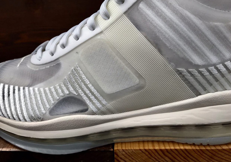其中一款以大面积白色示人,鞋身依然采用蝉翼鞋面与优质皮革共同打造,贯穿足底的全长 Air Max 气垫,承袭勒布朗战靴一贯的硬朗霸气,鞋面丰富的纹理刻画,符合詹姆斯的时尚审美。