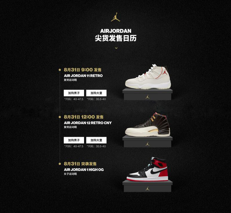 12 点将发售 Air Jordan 12 “CNY” 配色,男女全码,覆盖 35.5 码至 47.5 码。