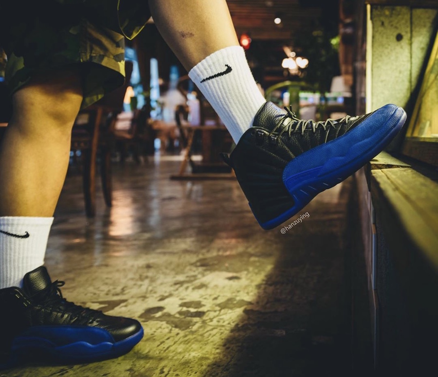 今早,球鞋账号 @hanzuying 为我们带来黑蓝 Air Jordan 12 的实物及上脚图,一起看看吧!