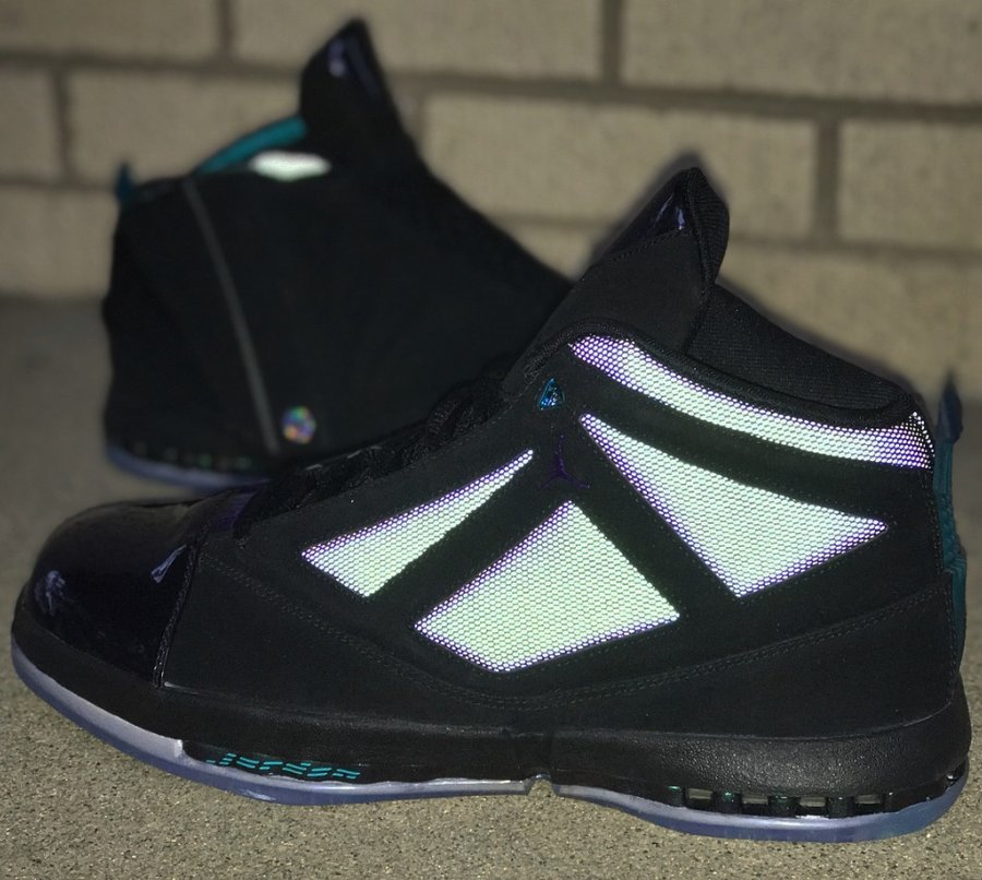 Air Jordan 16 当年本就是为退役当老板的乔丹打造,这双选用奢华的皮质和变色漆皮打造,风格更加鲜明。内层酷似昆虫眼睛的反光效果,彰显黄蜂主题。