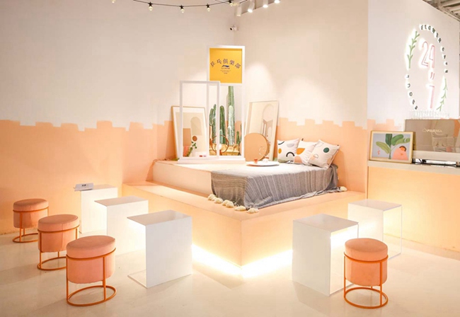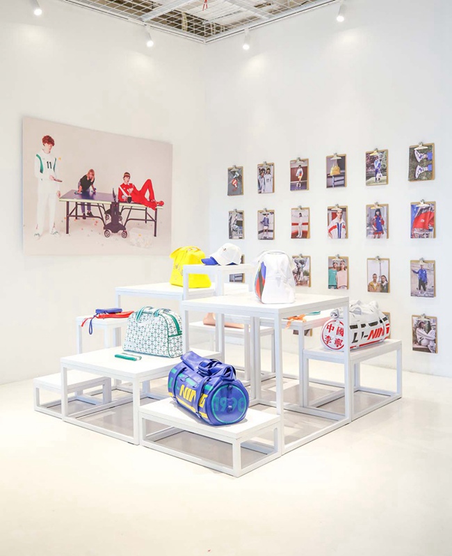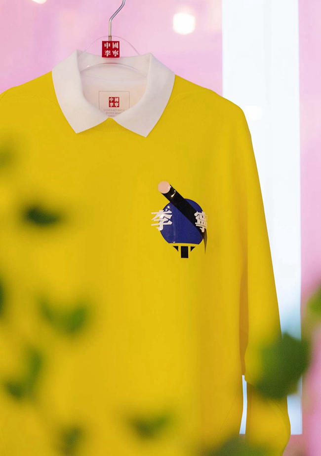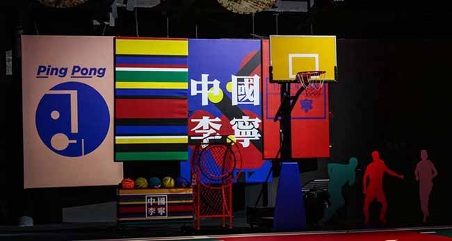 从国球乒乓等运动吸取灵感,突破常规采用 2D 抽象的点界面为设计元素,醒目的撞色前卫又让人过目不忘。