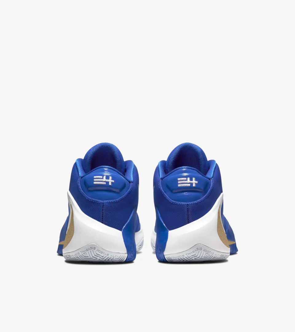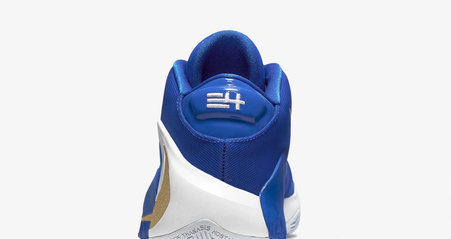 而更值得鞋迷关注的是,字母哥上脚的 Zoom Freak 1 “Greece”,Nike 专为他打造了的 FIBA 配色。