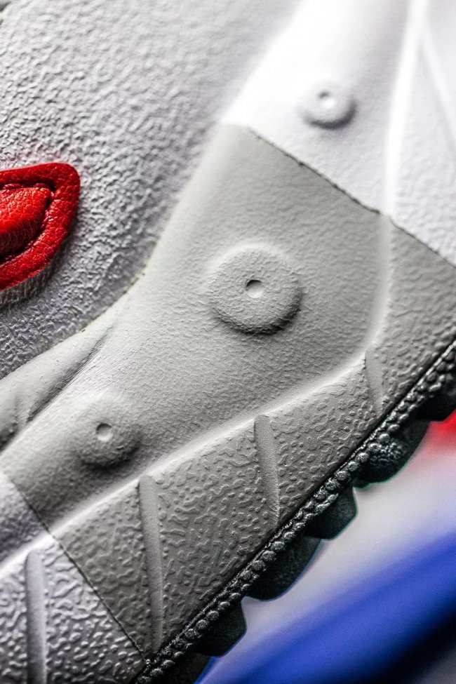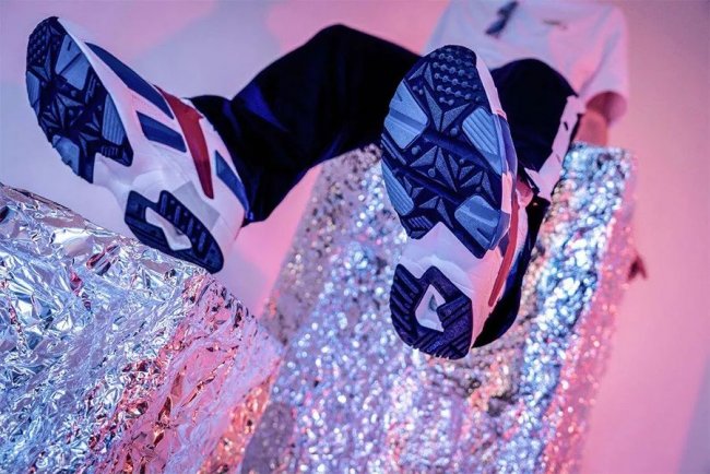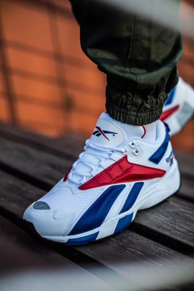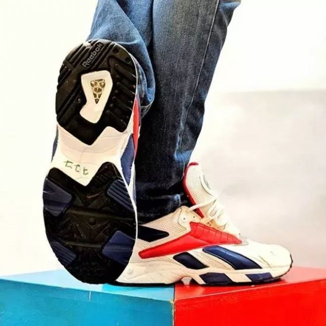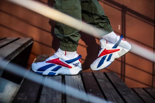 超大的 Reebok Vector Logo 横贯鞋身,招牌的红、蓝、白三色装扮,是上世纪的街头朋克的代表色。