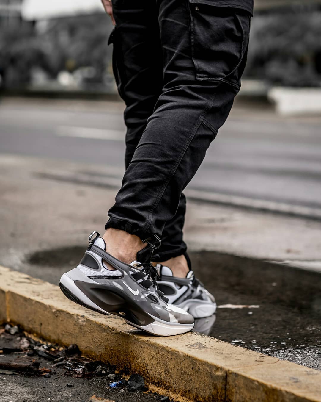 鞋面采用 Nexkin 科技,以白色为主色,辅以浅灰色及黑色点缀,独特的解构设计,使鞋面极具层次感。