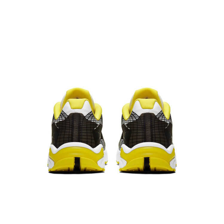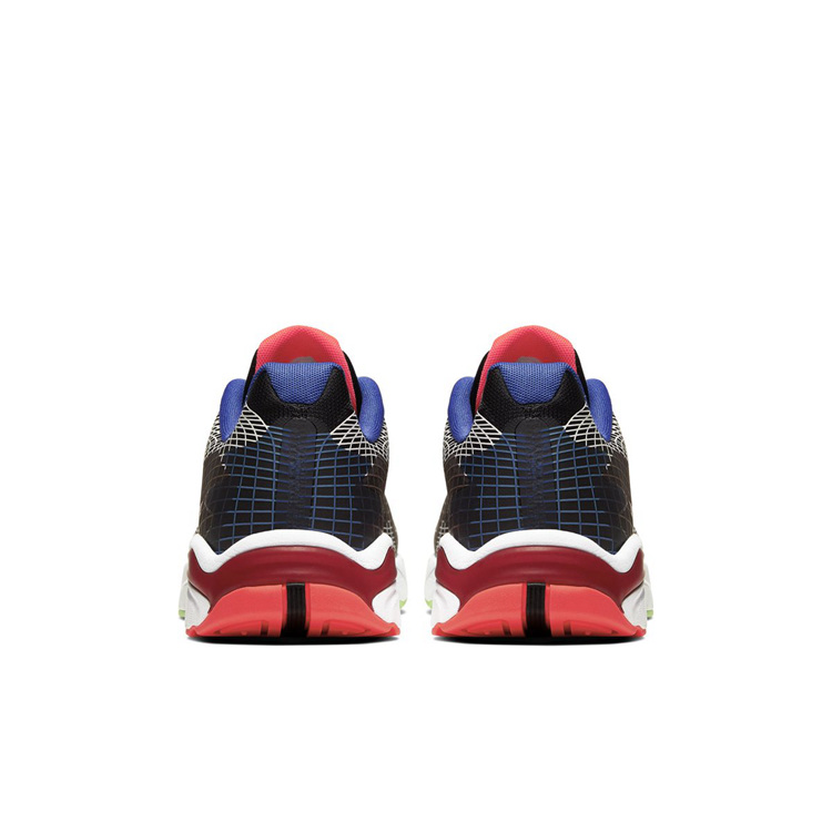 此次共曝光黑蓝、黑黄、黑灰及黑红共四种配色,其中黑红配色更是加入紫色点缀,同时外底采用亮眼绿色装饰,整体感觉活力十足。