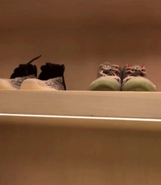 不过整段视频中最大的亮点还是鞋柜上三双明晃晃的 Nike Air Yeezy 2,三款配色齐聚。