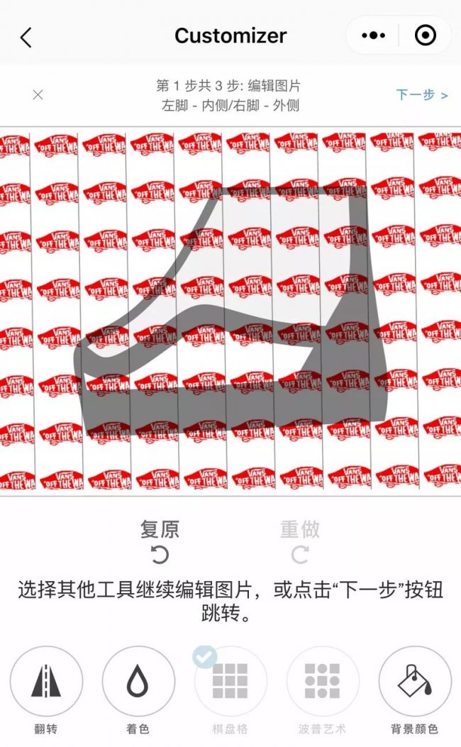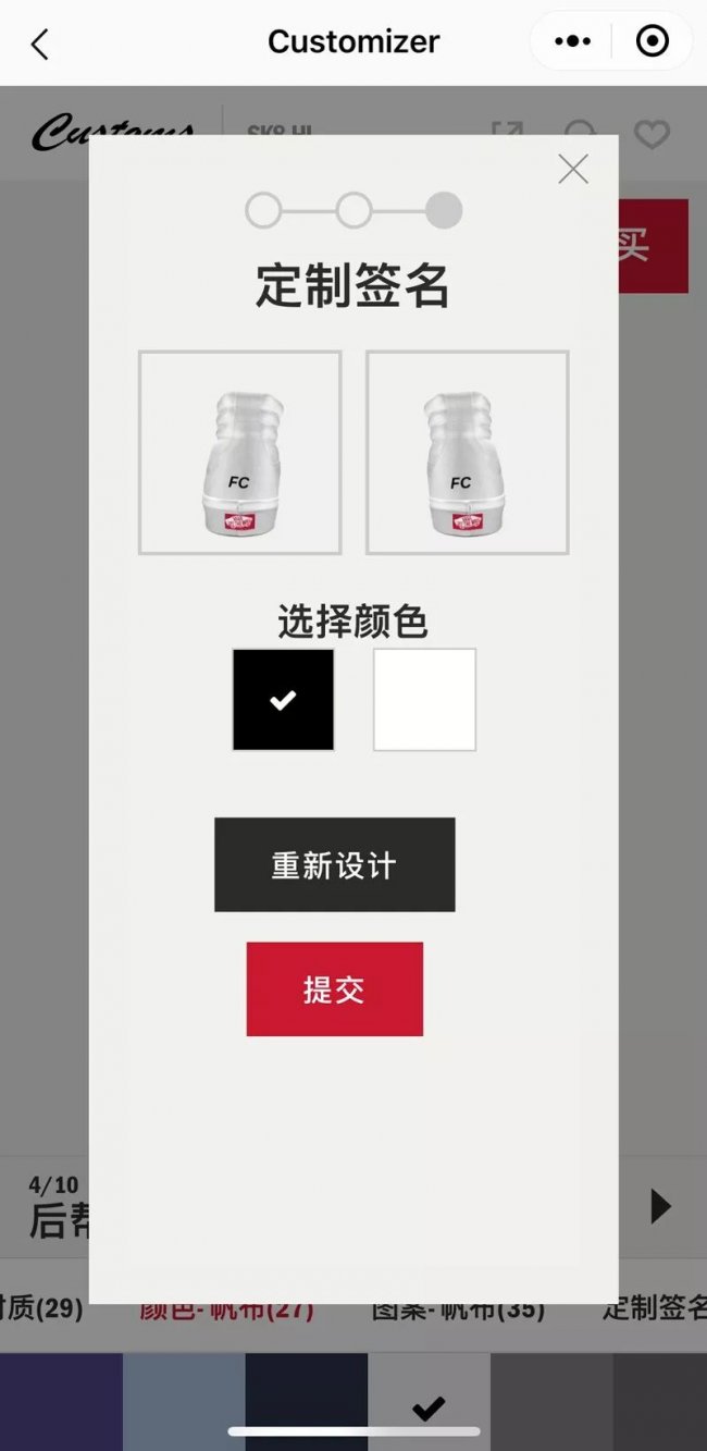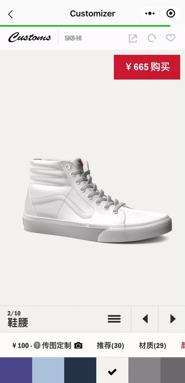 ▼ Vans Customs 自由定制系统小程序页面