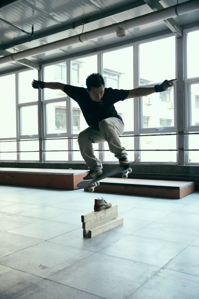 将螳螂和蝉的形象融入鞋款设计,彰显他对滑板文化与青年表达自我的独特理解,体现不断探索、创新的精神。