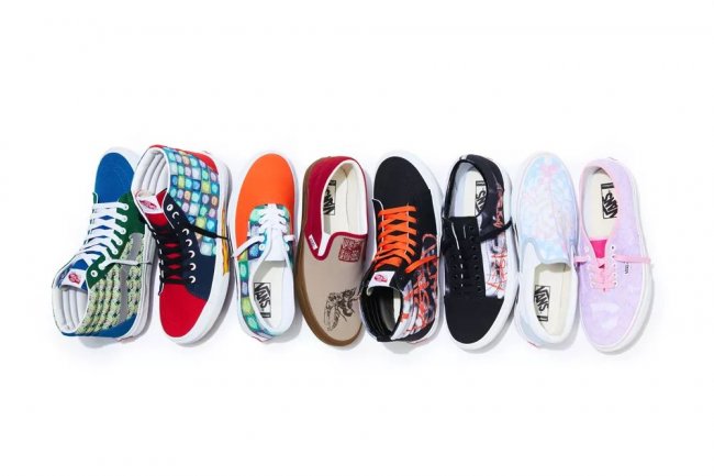 四款经典鞋型 Authentic、Slip-on(包含 Platform 厚底版本)、Old Skool(包含 Platform 厚底版本) 和 Sk8-Hi,开设全新 Vans Customs 自由定制鞋功能。