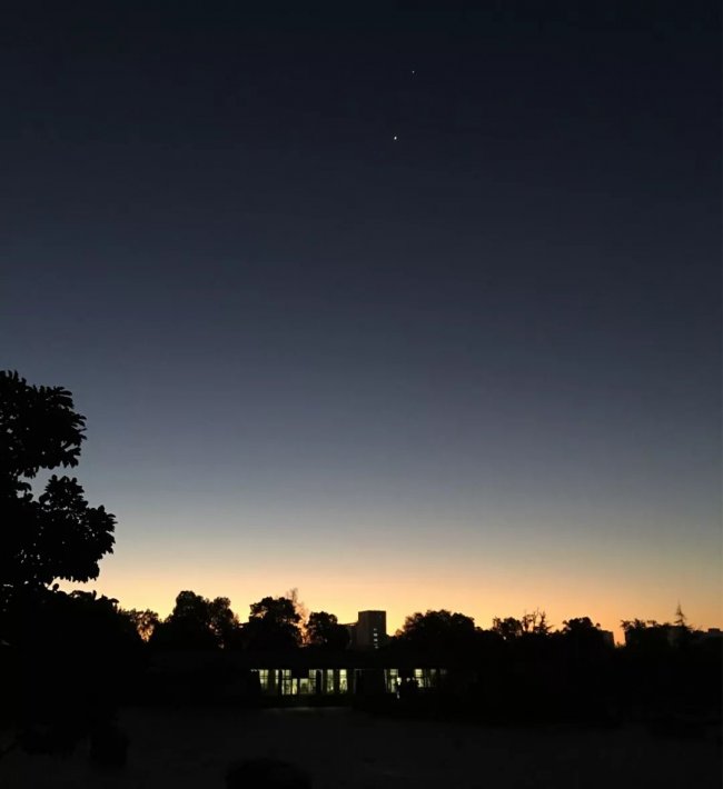这张照片是小编几年前拍的一张北京早上六点的深秋,虽然天上的星星没几颗,但日出的光晕却格外唯美。