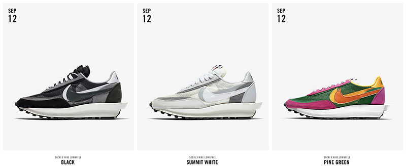 关注度极高的 sacai x Nike LD Waffle 三款全新配色,今日已在 sacaiofficial 官方微信公众号开启线上登记。