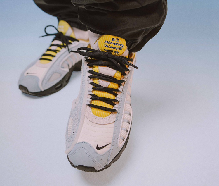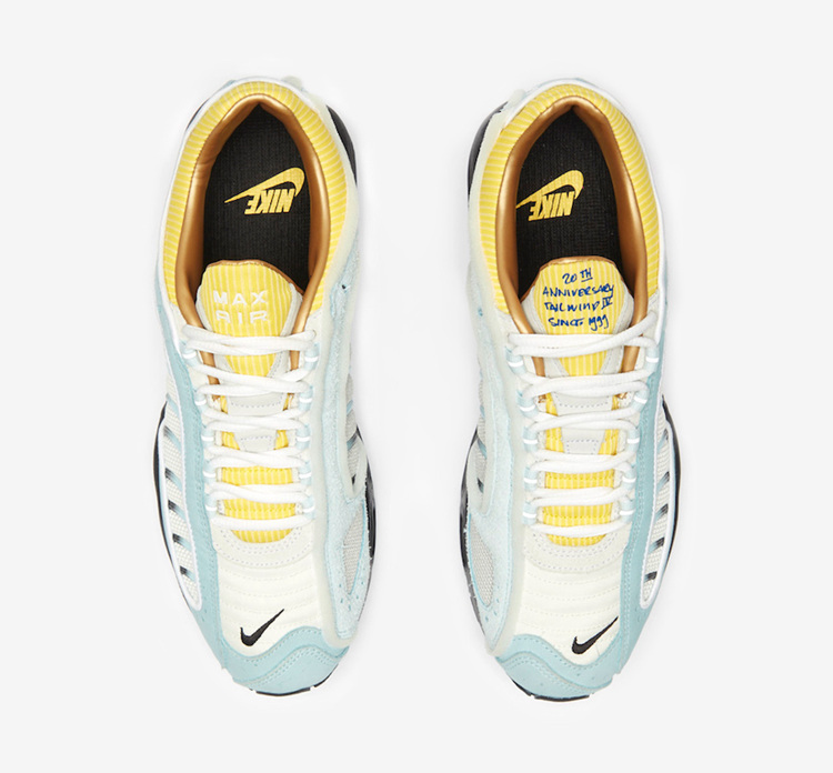 左右脚鞋舌位置分别带有手写体 “20th Anniversary Tailwind IV Since 1999(20 周年纪念 Tailwind IV 源自 1999 年)” 与大写 “MAX AIR” 字样,细节体现十分到位,彰显联名尊贵身份。