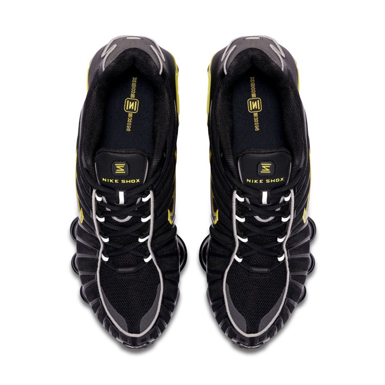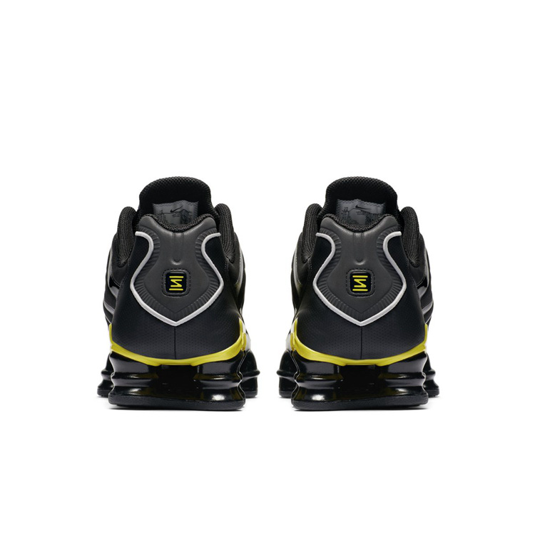 标志性骨架结构的鞋身线条与夸张的网眼组成复杂鞋面,外底由贯穿全掌的 Shox 气柱打造,霸气十足,同时带来十足的科幻感。