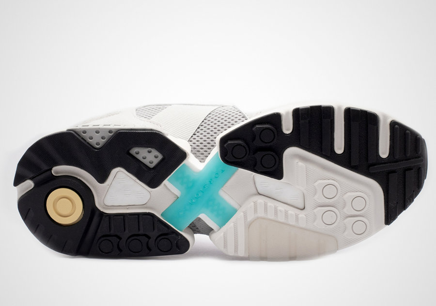 鞋型轮廓和鞋帮设计颇有 ZX 家族的熟悉感受,分离式的鞋底采用了泛黄做旧设计,复古韵味浓厚。