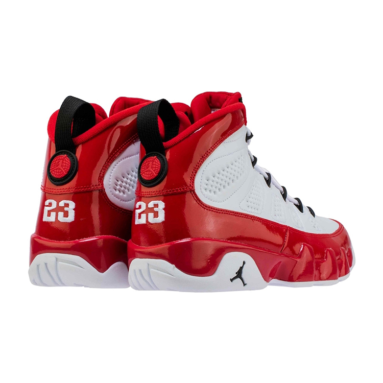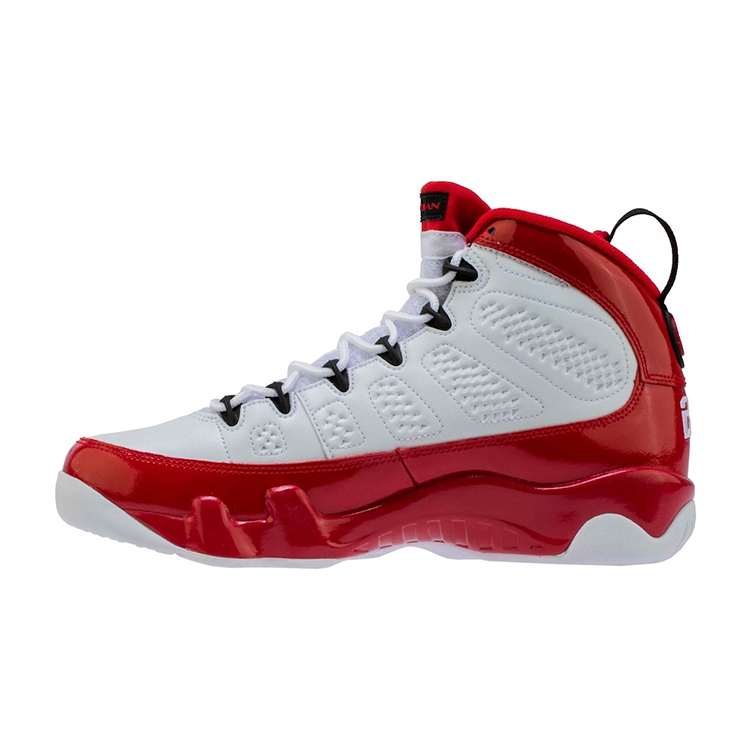 以经典 Air Jordan 9 鞋型为蓝本,鞋型上没有过多的改变,鞋面以经典红白双色为主色调,细腻白色皮革搭配亮眼红色漆皮,颇有几分大学队服的气质。