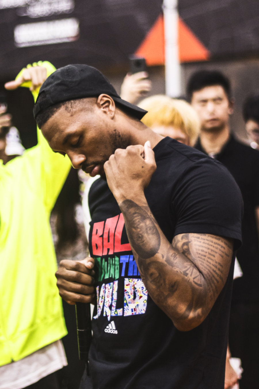 当晚 7 点,利拉德突然现身上海的洛克公园球场,引来了现场众多球迷的围观。