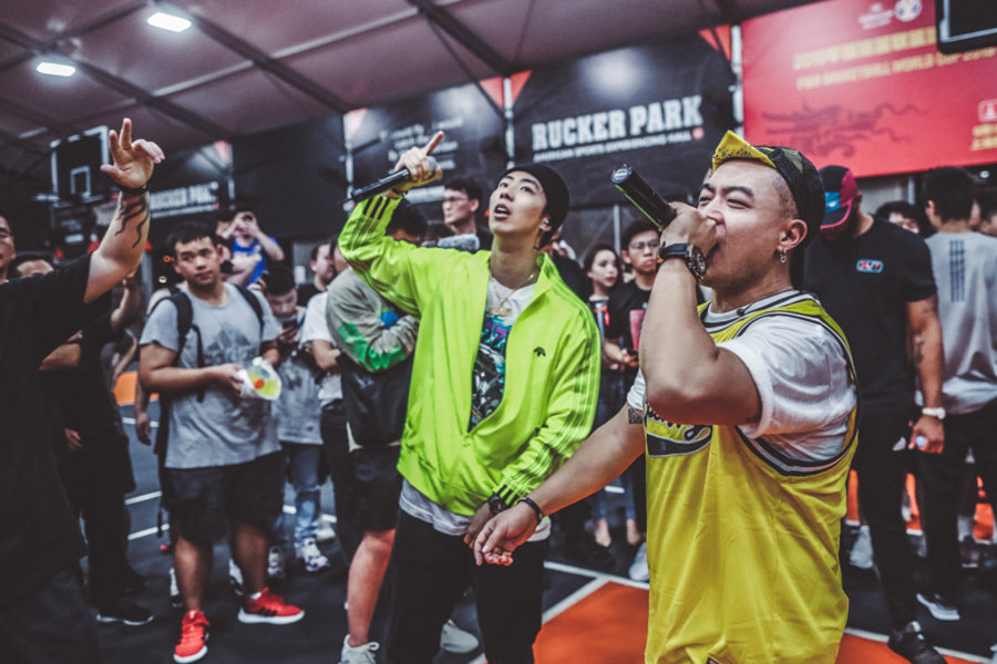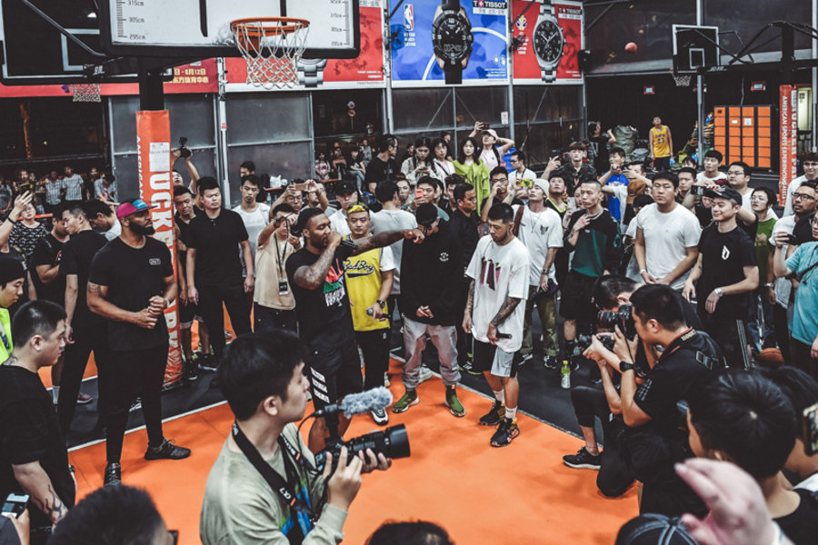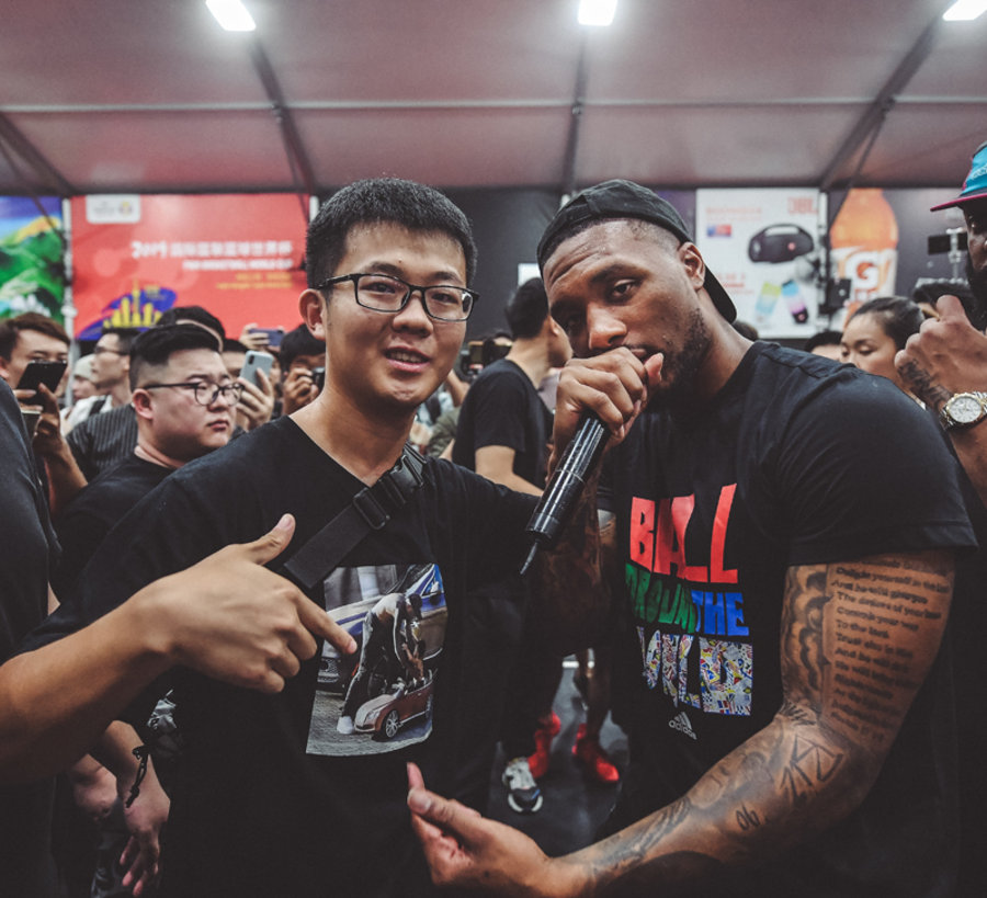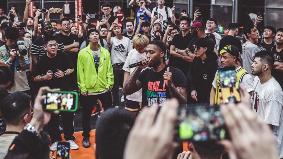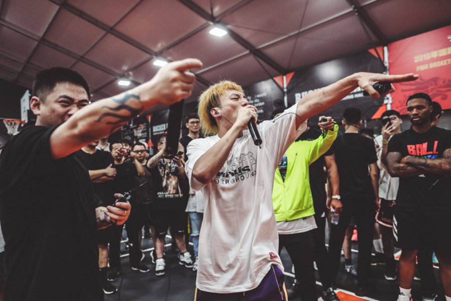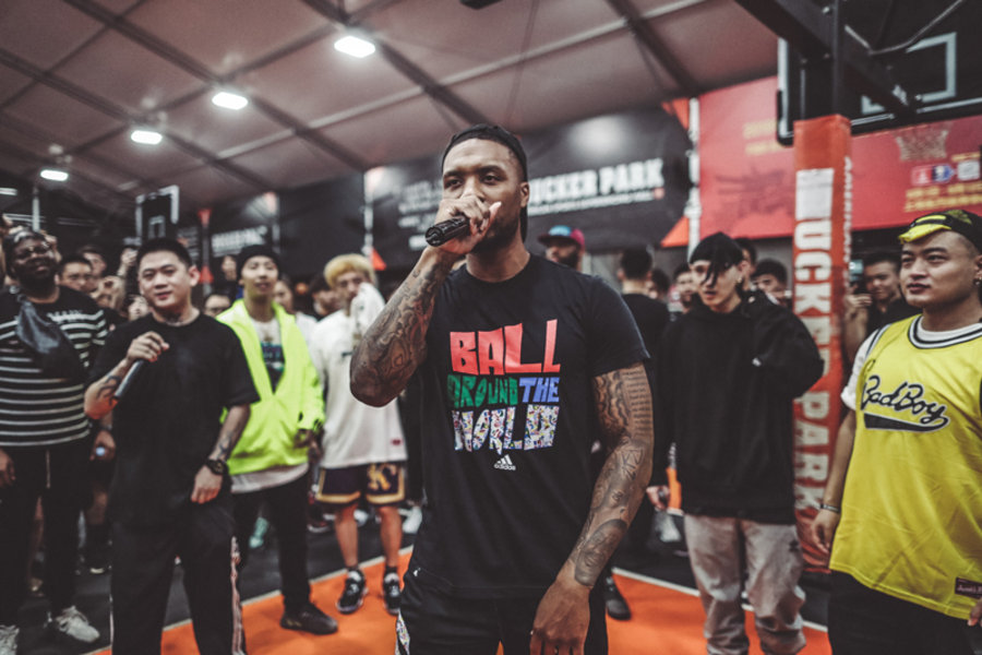 但来到球场并未秀球技,而是与派克特、辛巴、小车、上海 BASE 团队等本土 Rapper 带来了说唱表演。