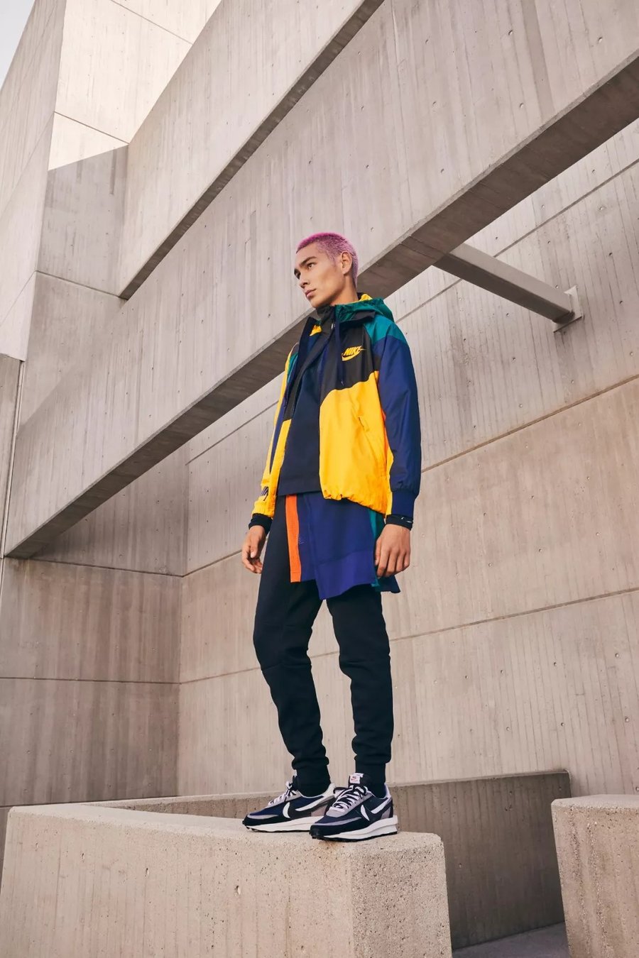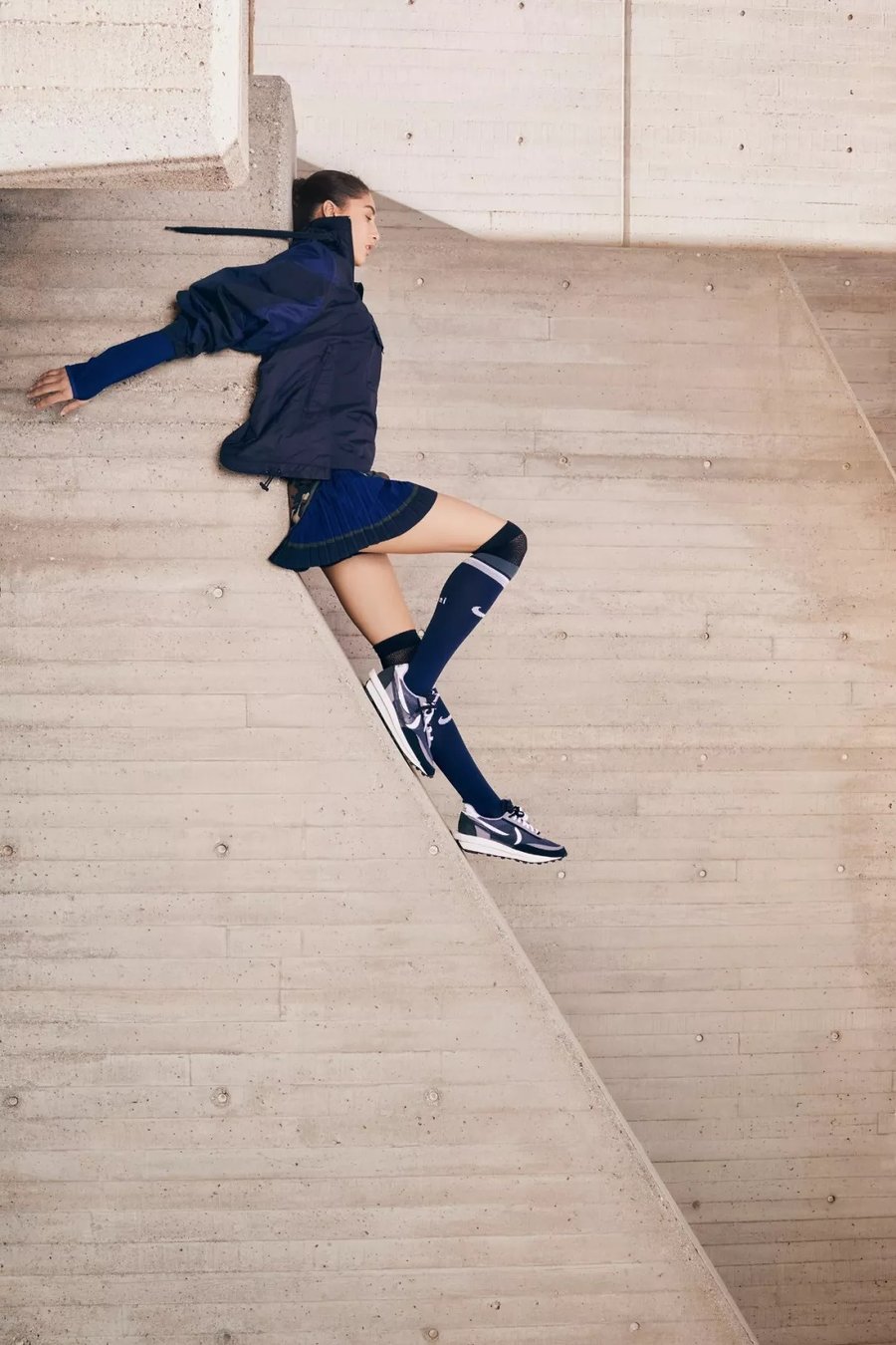 Sacai 主理人阿部千登势将 Nike 跑步服饰全新演绎,融入解构与混搭的理念对经典服饰进行重建,联名风格格外强烈。