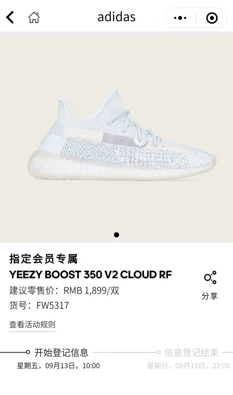 今天早些时候 adidas 会员中心微信小程序曾短暂开启此款 350 V2 的登记预告,但仅限于 adidas 金尊会员,随后下架,有条件的朋友不妨多加留意。