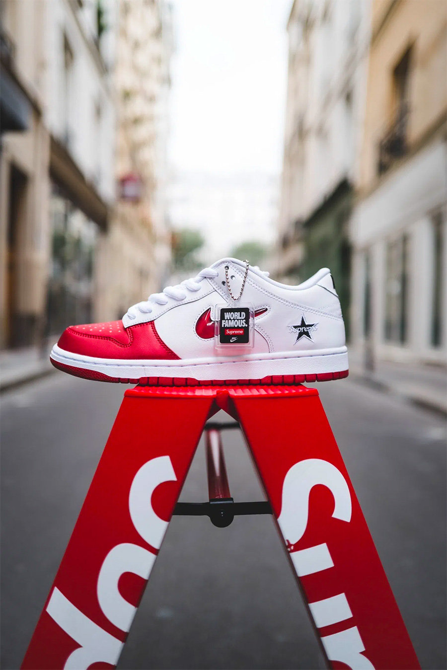 Supreme x Nike SB Dunk Low 三款配色无疑是今天最大的明星,简约又有极高的 Supreme 辨识度,加上 SB Dunk Low 低帮鞋型的热度在今年稳步提升,关注度极高!