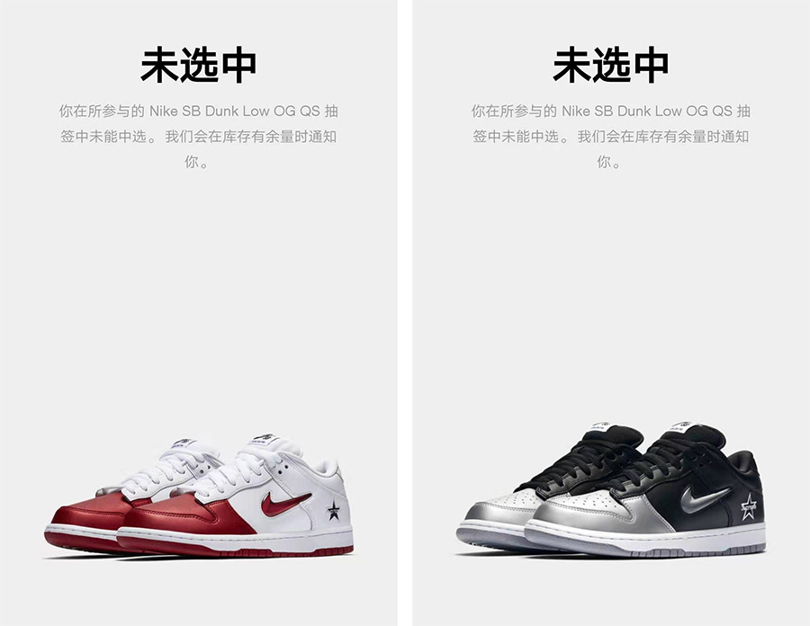 先是早上 9 点有 JE x Nike LeBron Icon 纯白配色,同时还有 Supreme x Nike SB Dunk Low 的三款配色。