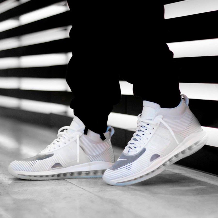 JE x Nike LeBron Icon “Sail” 纯白配色完美的展现了蝉翼鞋面的魅力,将詹姆斯最爱的 LeBron 8 全掌 Air Max 气垫融入其中,John Elliott 的时尚手法让这双鞋简约干练又有精致细节。