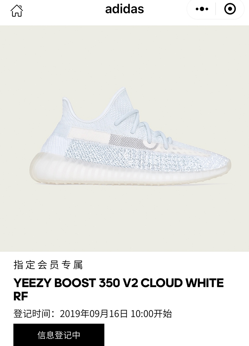 Yeezy 350 V2 “Cloud White” 将分别在 10-11 点、12-13 点两个时间段开始预约。