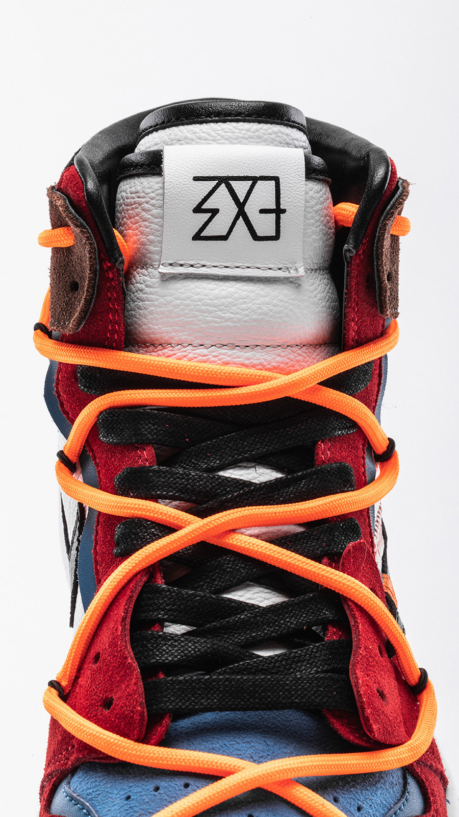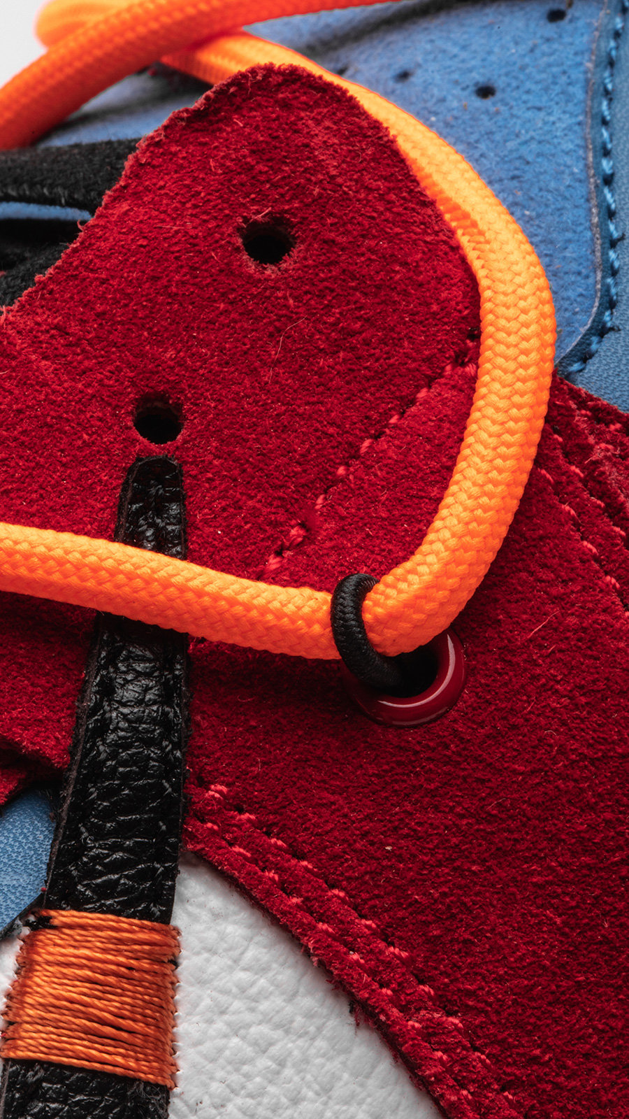 夺目的艳丽色调,横跨鞋面的鞋带,加上醒目的「倒钩」,这双鞋无论远观还是近赏,都有十足的视觉冲击力。