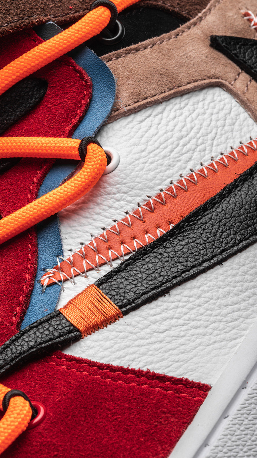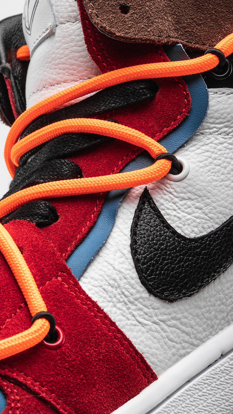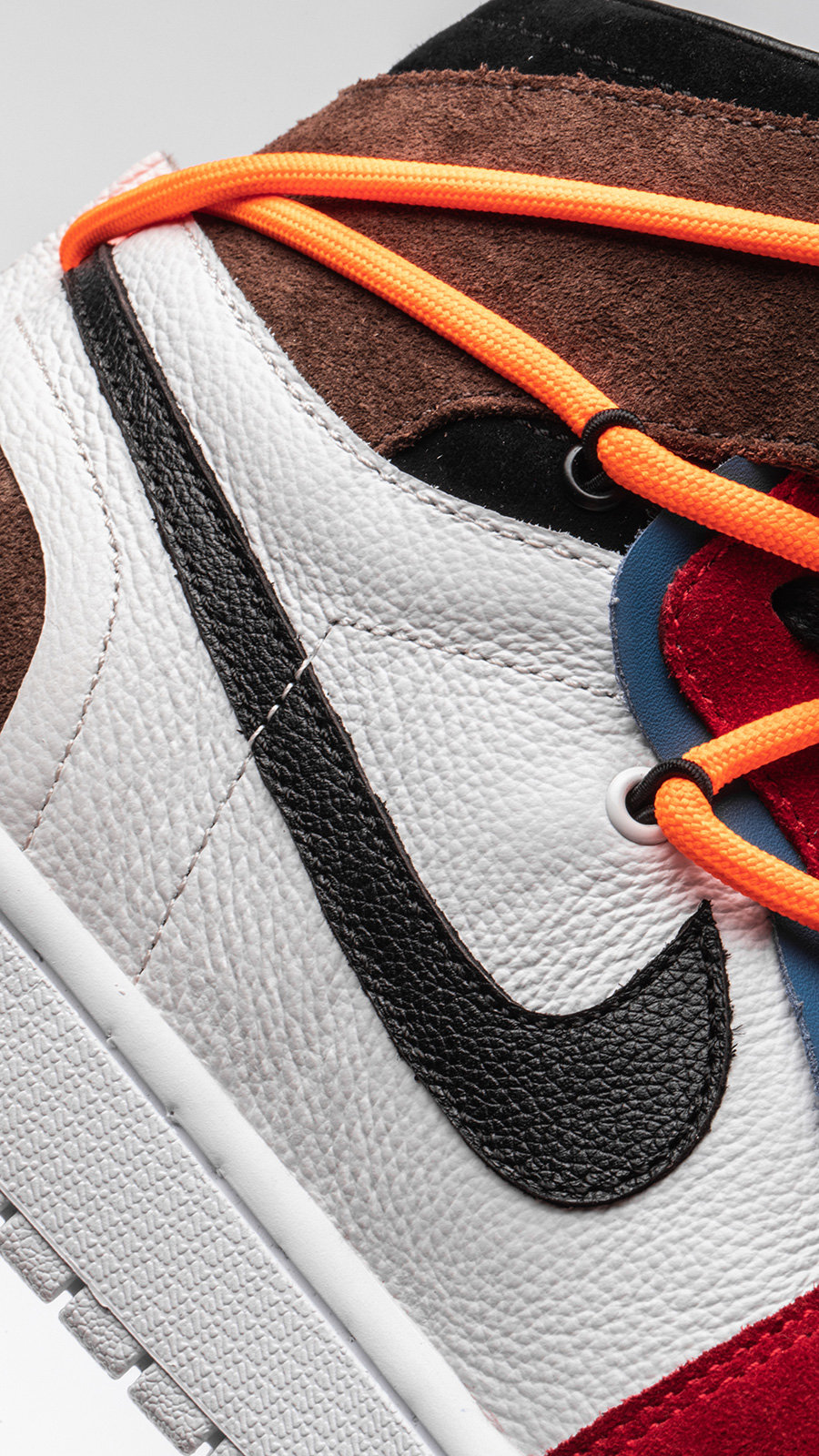 这双鞋基于 Air Jordan 1 鞋底完全进行了鞋身的重制,选用优质头层牛皮和羊翻毛皮等打造。