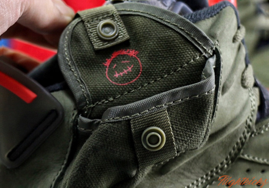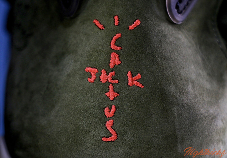 使用 Travis Scott 个人最爱的橄榄绿为主调,细节中点缀亮眼橙色,犀利又醒目。
