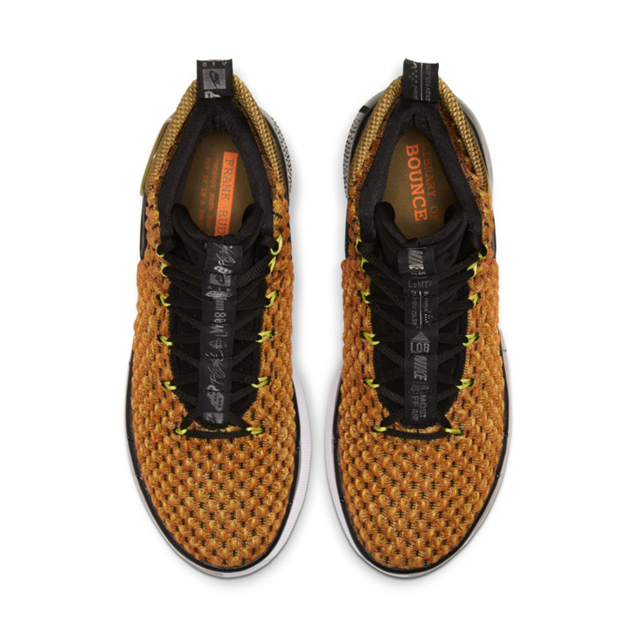 编织鞋面及前掌大面积开窗气垫均以橙黄色装扮,鞋帮部分则为磨砂皮革材质打造。