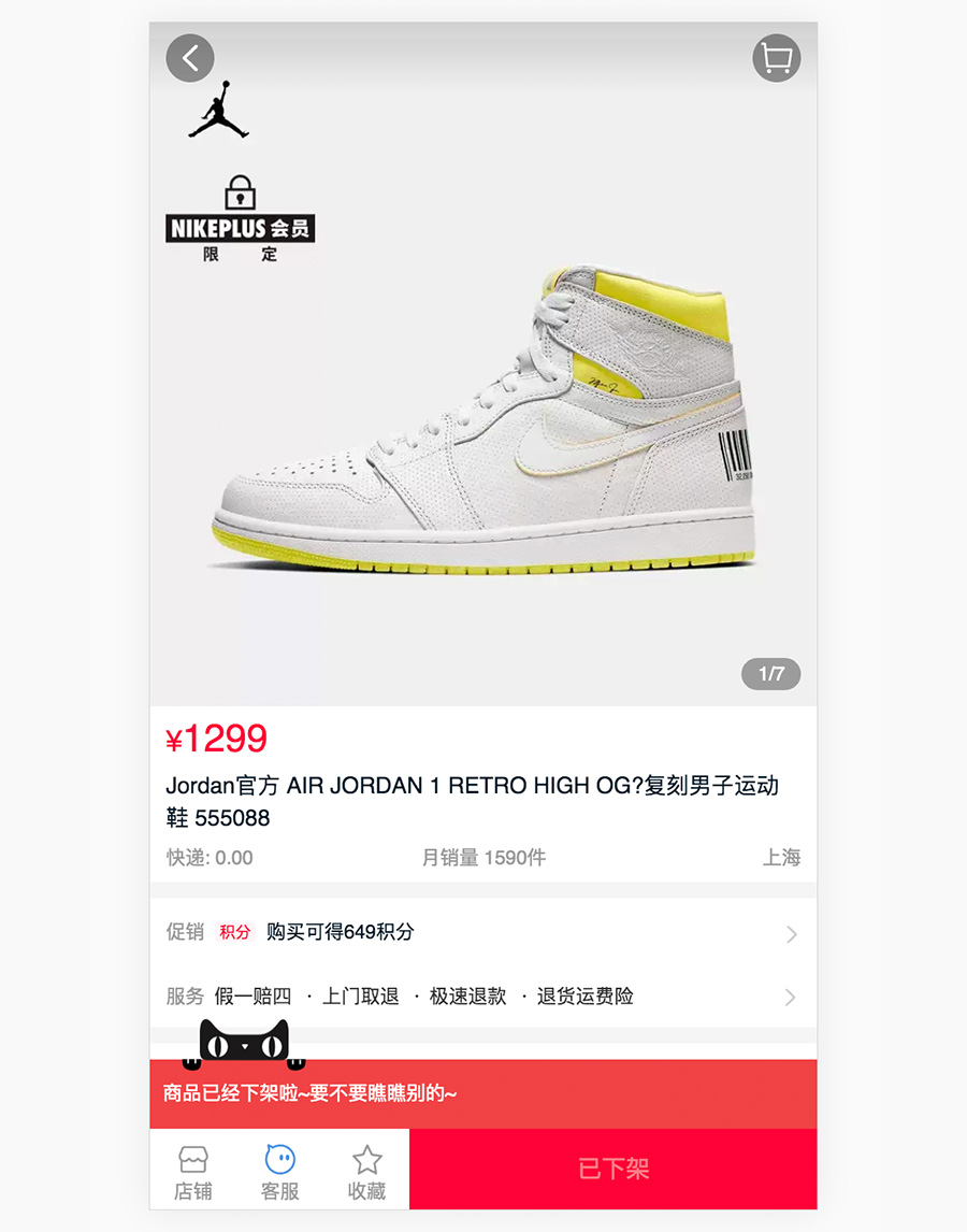Jordan 天猫旗舰店已经可以找到这款配色的影子,发售信息已经登陆网店,目前处于「下架」状态,只待正式发售日期的来临。